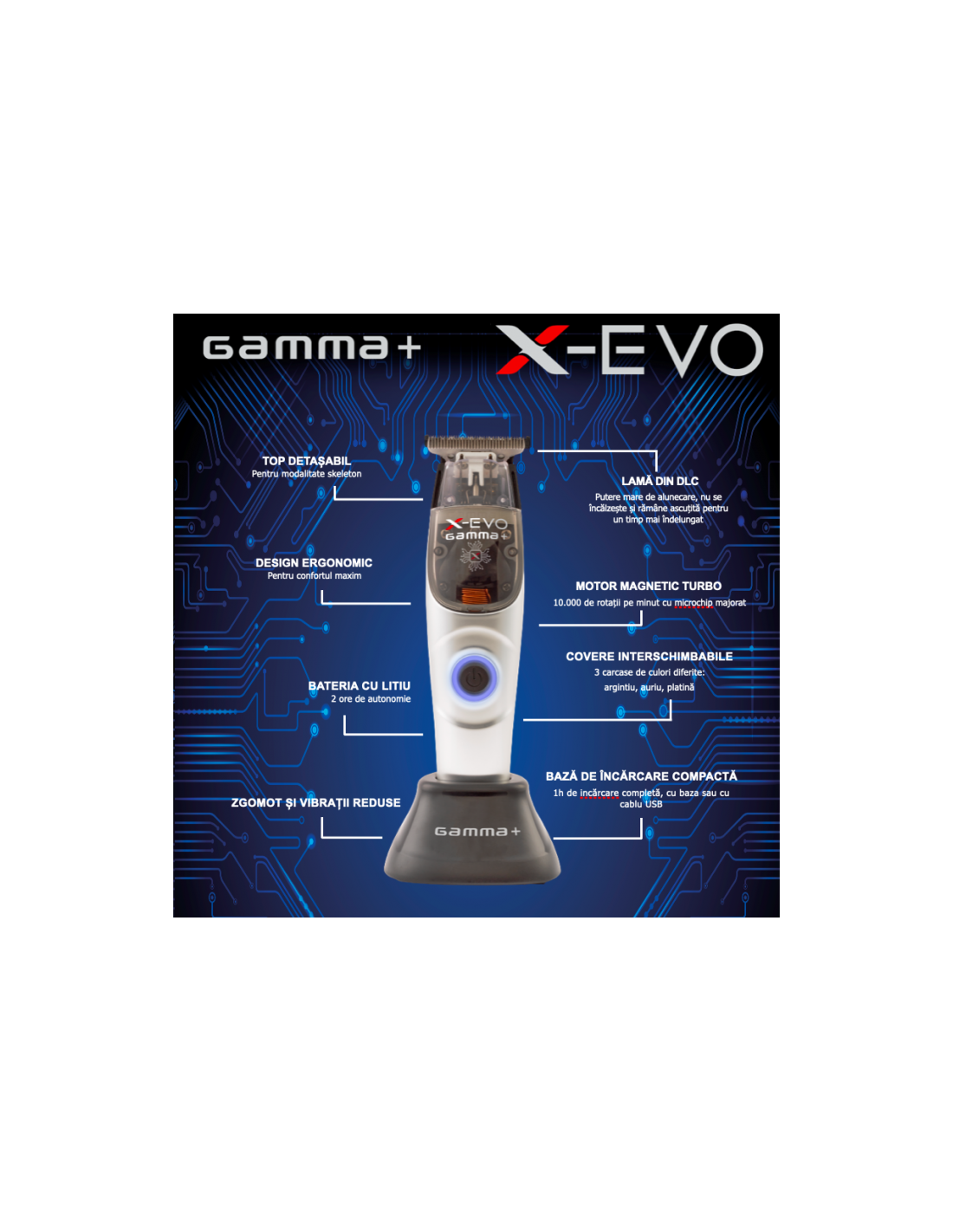 Masina de tuns si contur - trimmer X-EVO + BONUS 2 COVERS - Gamma Piu