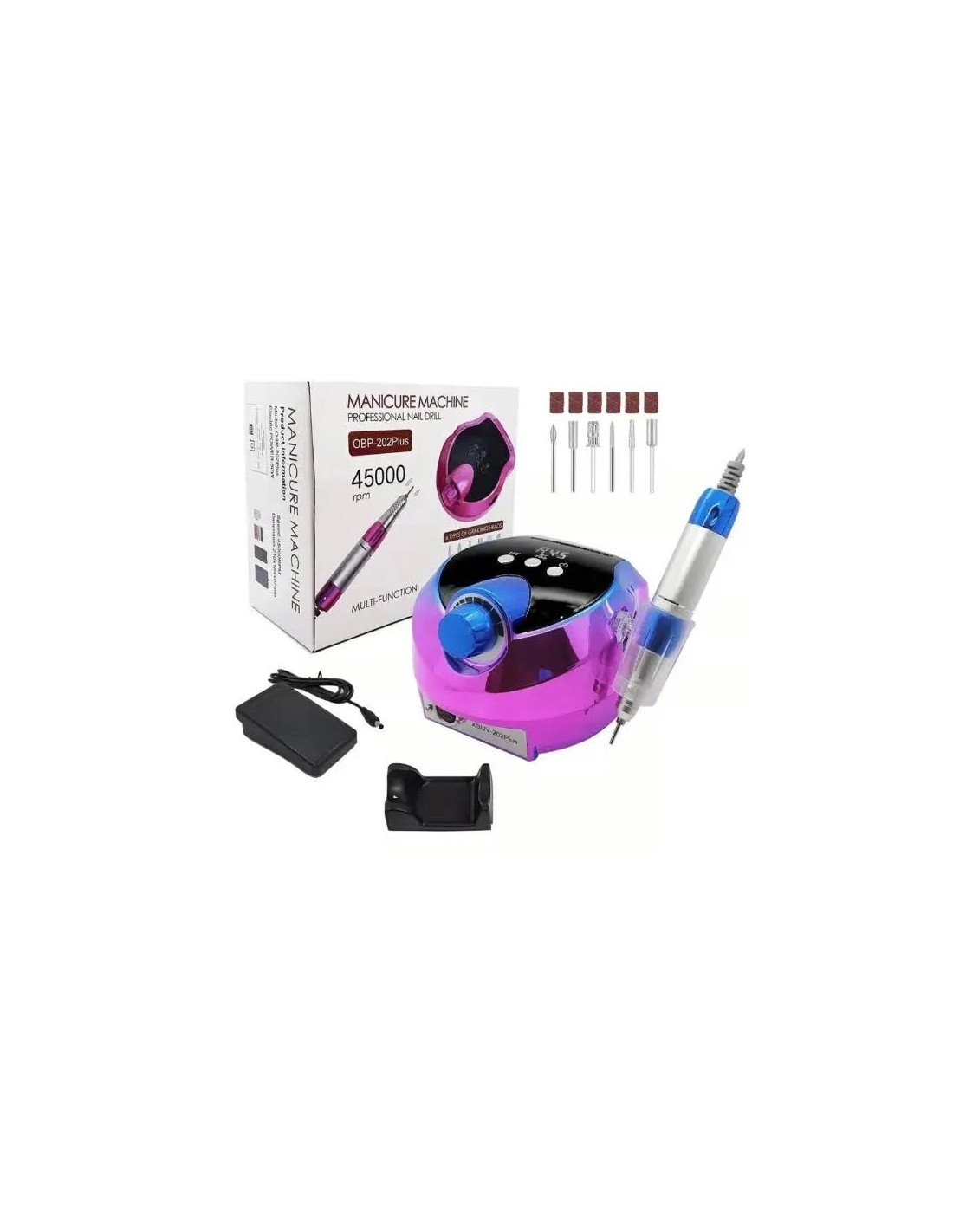 Freza pentru manichiura-pedichiura, uz profesional.Afisaj digital cu LED-uri. Protectie incorporata impotriva supraincalzirii. Materiale de inalta calitate. Control cu buton comutabil pentru mana si picior. Directie de rotatie reglabila. 6 capete de slefuire interschimbabile.